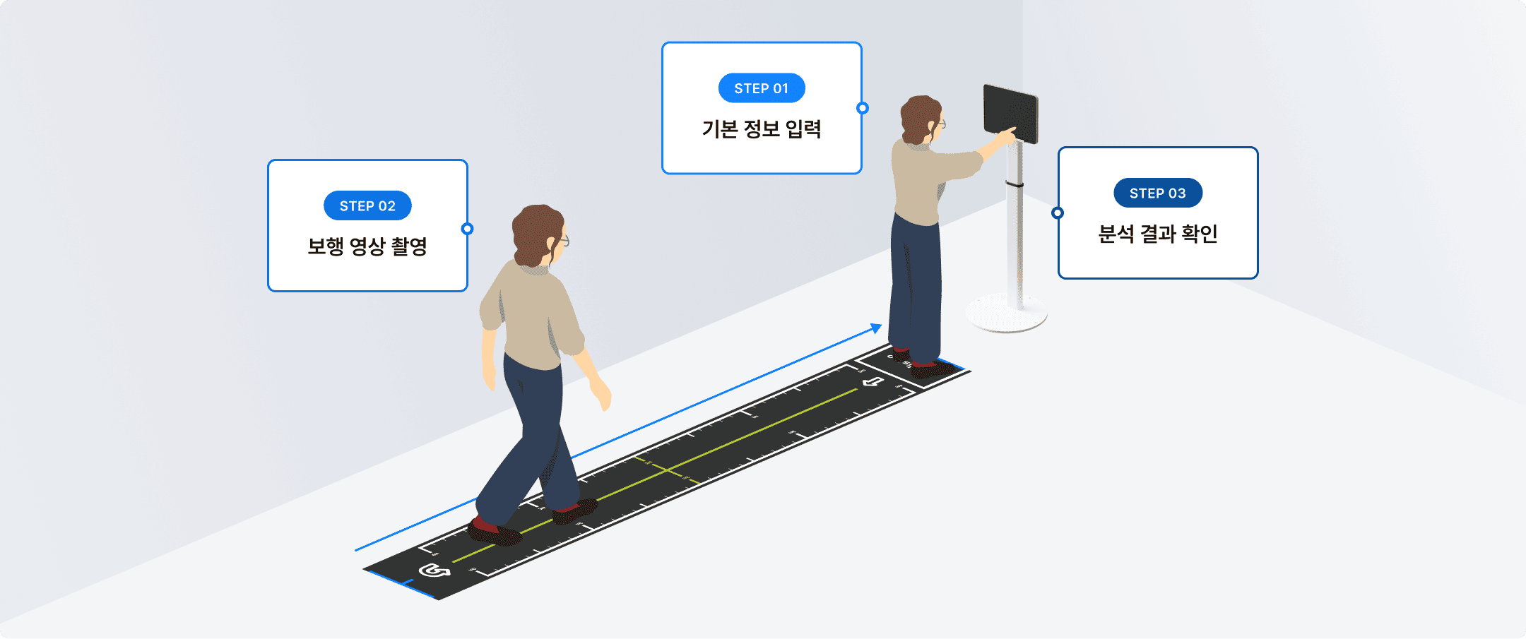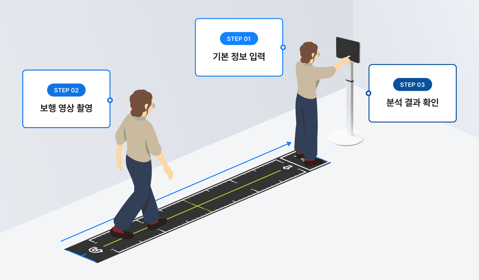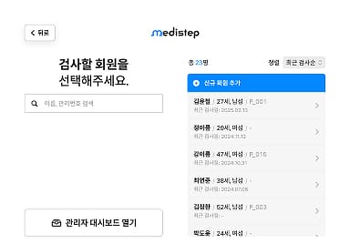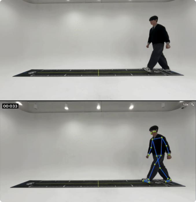 기술소개 제품소개 도입사례 고객지원 회사소개 기술소개 제품소개 도입사례 고객지원 회사소개 피지컬 AI 시대, 비전 AI로 보행 분석을 혁신하는 선도 기술 Core Technology Core Technology 모바일 카메라 기반 마커리스 보행분석 기술 NET 신기술인증을 받은 메디스텝의 “모바일 카메라 기반 마커리스 보행분석 기술”은 광학 / 컴퓨터비전 / 동작인식 / 전처리 / 후처리 / 시계열 데이터 분석 기술 / 의료기기 사용적합성(UX) 등을 포괄합니다. 정밀한 40종 보행 지표 분석 5m 왕복보행 촬영을 기초로 하여 측면 / 정면의 보행을 촬영하고, 자동으로 총 40여개 지표의 리포트를 만들어냅니다. 효율을 높이는 1분 검사 UX 1분 검사 UX 및 자동 리포트는 검사의 효율을 높여, 장비를 사용하는 현장 전문가들의 생산성을 극대화 합니다. 연결이 필요 없는 보안 분석 온디바이스(On-Device) 분석은 별도의 인터넷 연결 없이, 사이버 보안을 철저하게 준수하도록 합니다. 한계를 넘는 원근 보정 기술 초광각 카메라와 실시간 원근보정 기술을 활용해, 싱글카메라의 한계를 뛰어 넘는 동시에 장비 편의성을 극대화 합니다. 초고속 영상 처리와 임상 활용 정적 이미지 검사를 넘어, 4-500장 이미지 분량의 비디오 데이터를 최신의 NPU를 활용해 10초 내외로 처리하고, 촬영된 보행 영상은 임상분석에도 적극 활용할 수 있게 됩니다. Technology Certification Technology Certification Technology Certification 폼팩터는 진화하지만, 임상적 신뢰성과 품질 기준은 철저히 유지합니다. 0 % + GAITRite 대비 0 % + Vicon/Qualisys 모션캡처카메라 0 회 + 외부 기관 장비 테스트 인증 산업통상자원부 NET 신기술 인증, ISO 13485 국제 의료기기 품질인증, 식약처 1등급 보행분석계(2종), 유럽 CE-MDR 인증 특허 등록특허 6건, PCT 출원, 특허기술 적용 확인서 * * 실제 특허의 핵심청구항이 제품에 반영되었는지 한국특허기술진흥원의 검증 문서 외부 성적서 한국생산기술연구원, 고려대학교, 국립재활원 등 국내 최고의 기관들과 함께 Gold Standard 장비와 진행한 엄격한 밸리데이션을 통해 기술력을 증명하고 있습니다. 보행검사를 넘어 동작검사로 확장 24년 12월, 신의료기술에 지정된 근감소증에서의 간단신체기능검사(SPPB) 기능을 담았습니다. 다양한 동작분석 검사의 자동화를 통해, 임상 현장의 생산성을 극대화합니다. 보행 속도 검사 균형 검사 의자 일어나기 검사 마커리스로 검사하고 보행속도부터 보폭, 보행주기, 비대칭 등 자동 분석 결과를 1분만에 확인해보세요. AI 센싱 (측면 / 전면) 측면보행 측정 전면보행 측정 실시간 원근 보정 AI 자동 리포트 생성 1분 내. 리포트 출력 자체개발 시계열 데이터 분석 알고리즘 전문 검사자 없이, 데이터 자동 해석 분석 결과를 한 눈에, 상담까지 한 번에 PDF 파일을 간편하게 전송하고, 무선 환경에서 바로 출력할 수 있도록 지원합니다. 측면보행 리포트 예시 전면보행 리포트 예시 SPPB검사 리포트 예시 자세한 내용이 궁금하다면? 다운로드 다운로드